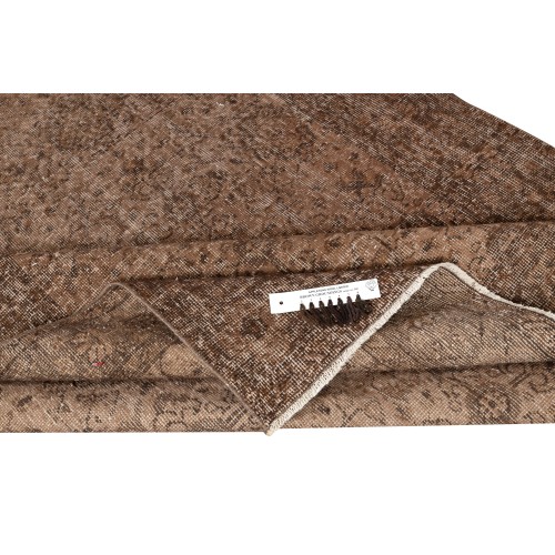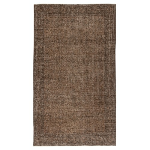 Vintage Wool Area Rug Overdyed in Brown for Modern Interiors. Handmade in Turkey