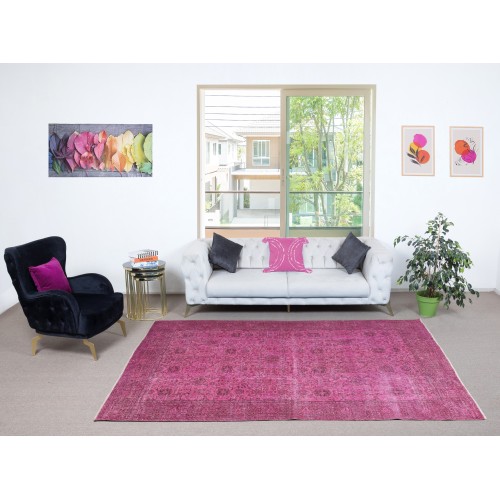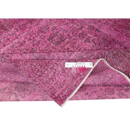 Vintage Handmade Turkish Wool Area Rug Redyed in Pink for Modern Interiors